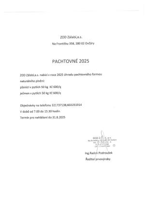 ZOD ZÁLABÍ PACHTOVNÉ 2025