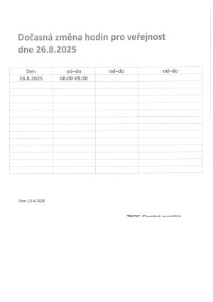 Omezení pracovní doby pošty Partner 26.8.2025 od 8:00 - 9:30