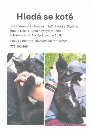 Našlo se kotě v ulici Ke Stráni v Konárovicích