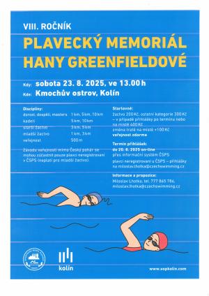 Pozvánka na VIII.ročník Plavecký memoriál Hany Greenfieldové 23.8.2025 od 13:00 na Kmochově ostrově v Kolíně