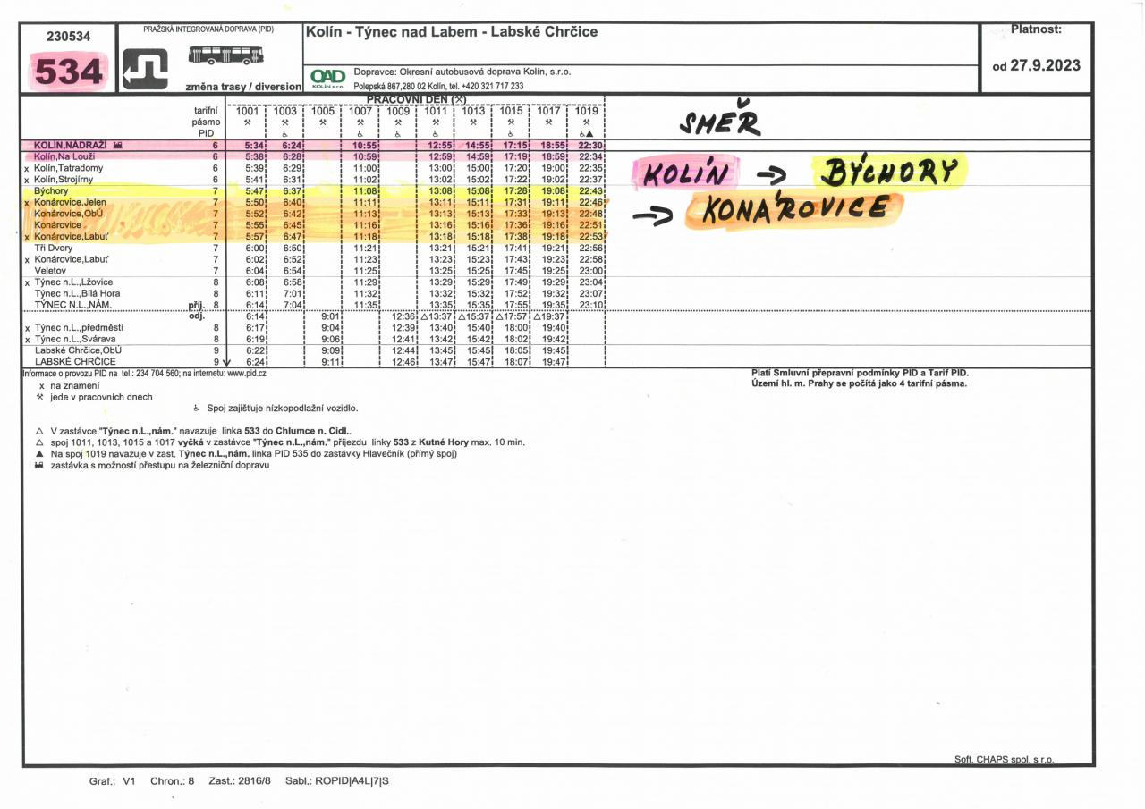 AUTOBUS č.534 měna od 27.9.2023