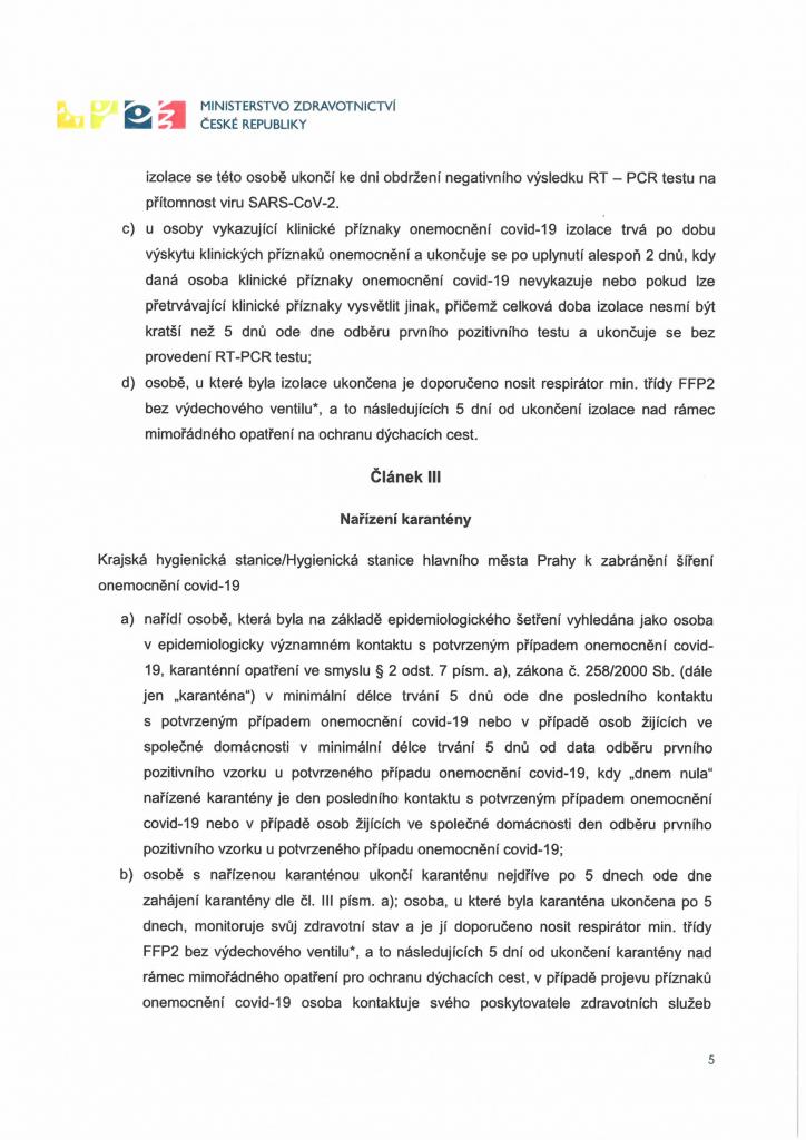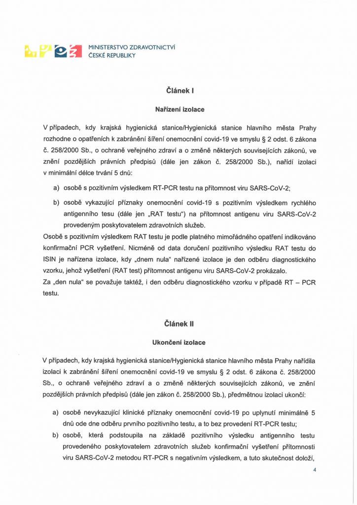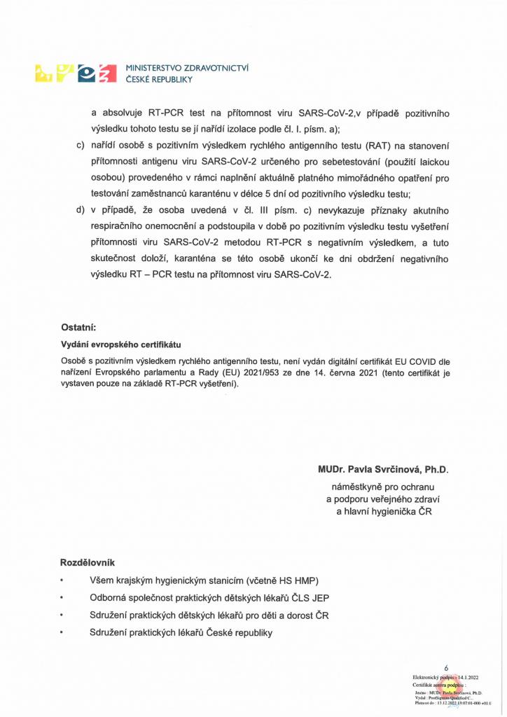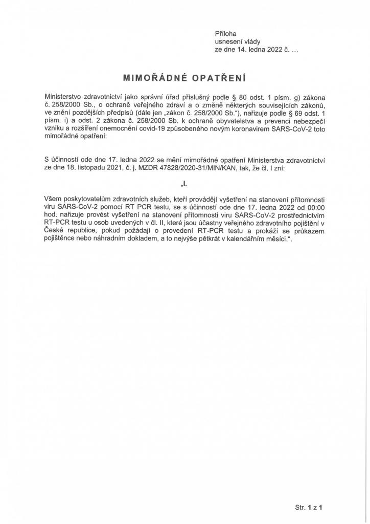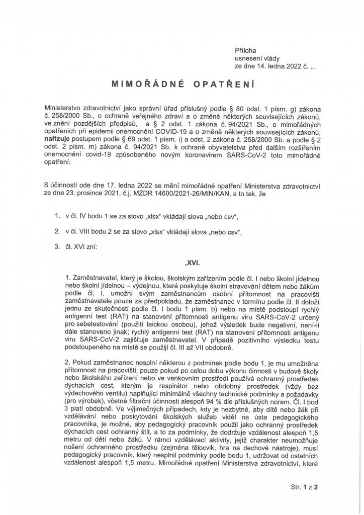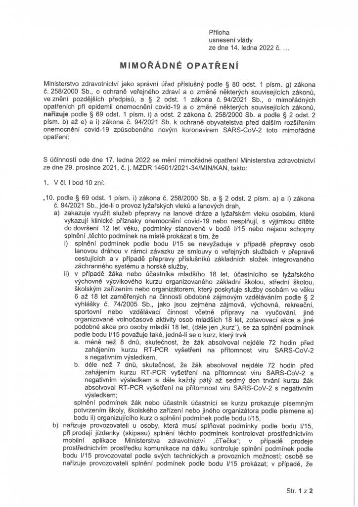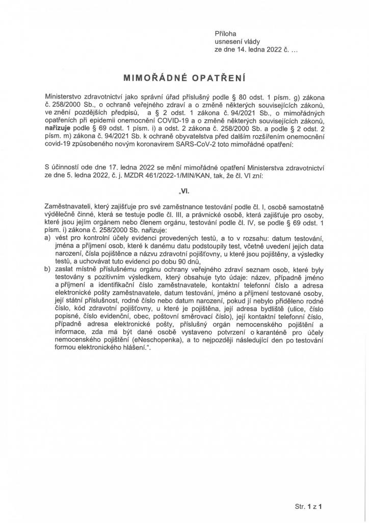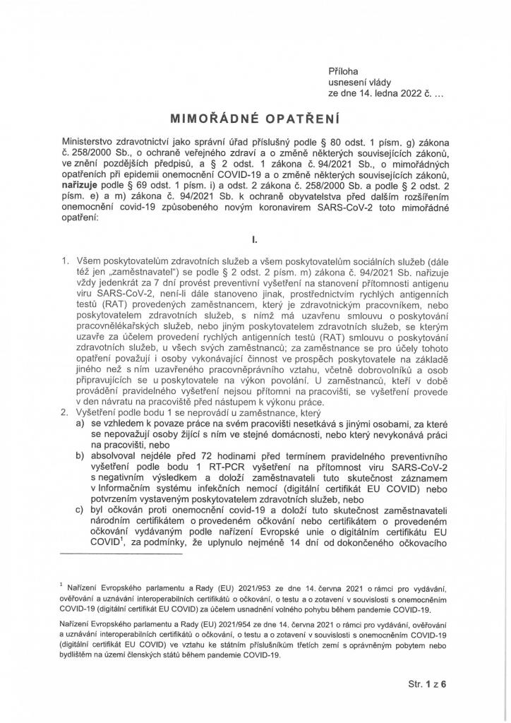 COVID INFO, Mimořádné opatření ze dne 14.1.2022