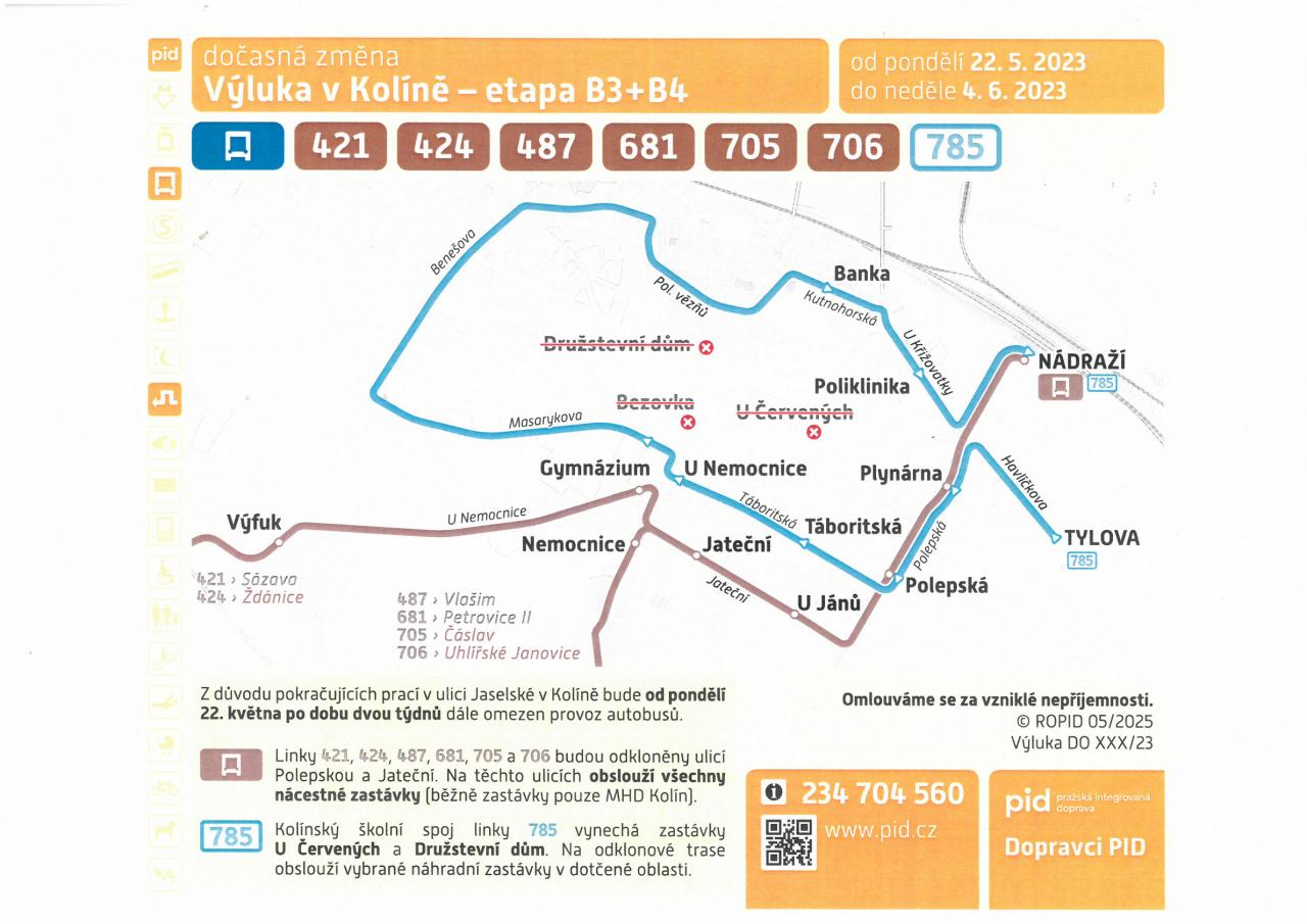 Dočasná výluka autobusů v Kolíně - etapa B3+B4 od 22.5.2023- 4.6.2023 viz. příloha.