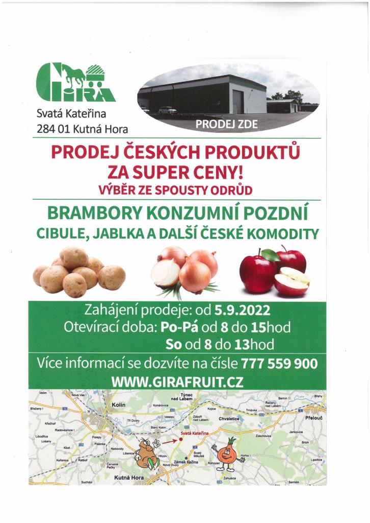 GIRA Svatá Kateřina prodej českých produktů za super ceny. Zahájení prodeje 5.9.2022 viz. leták