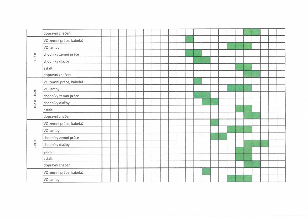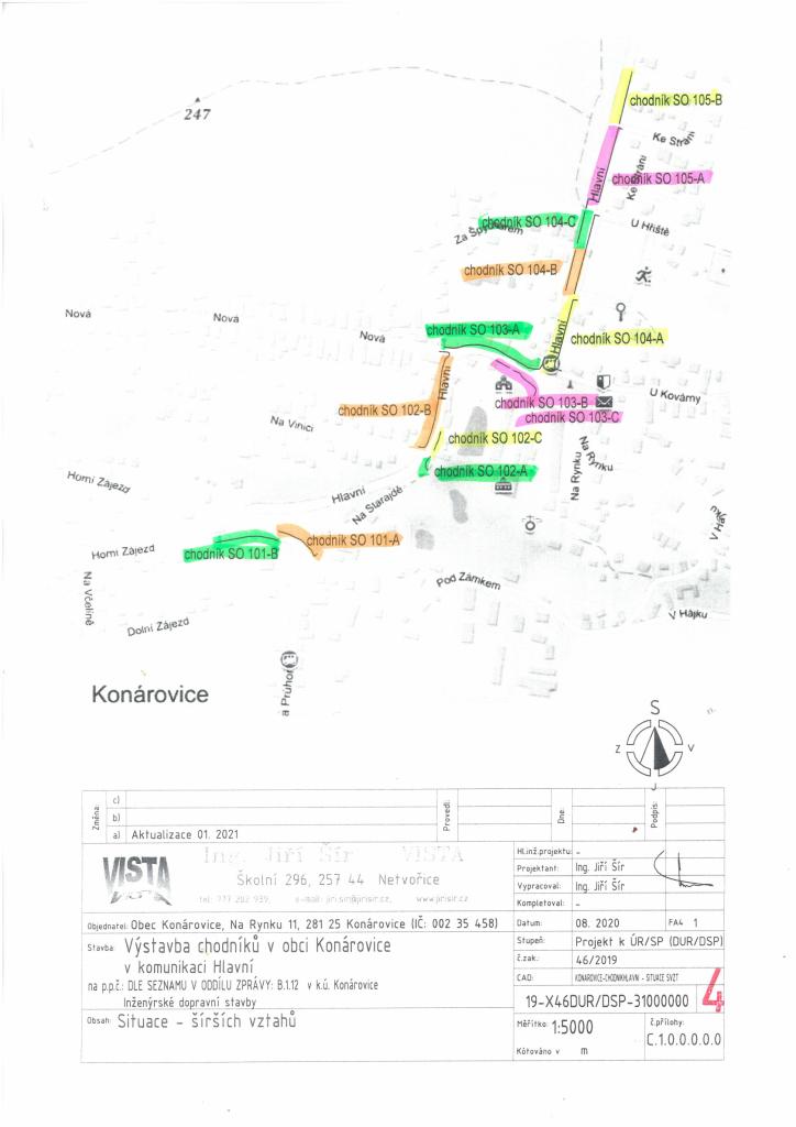 Harmonogram prací - výstavba chodníků v obci Konárovice v komunikaci Hlavní