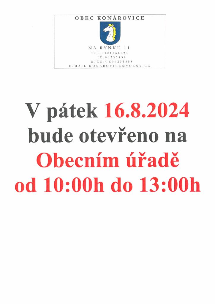Obecní úřad pátek 16.8.2024Obecní úřad