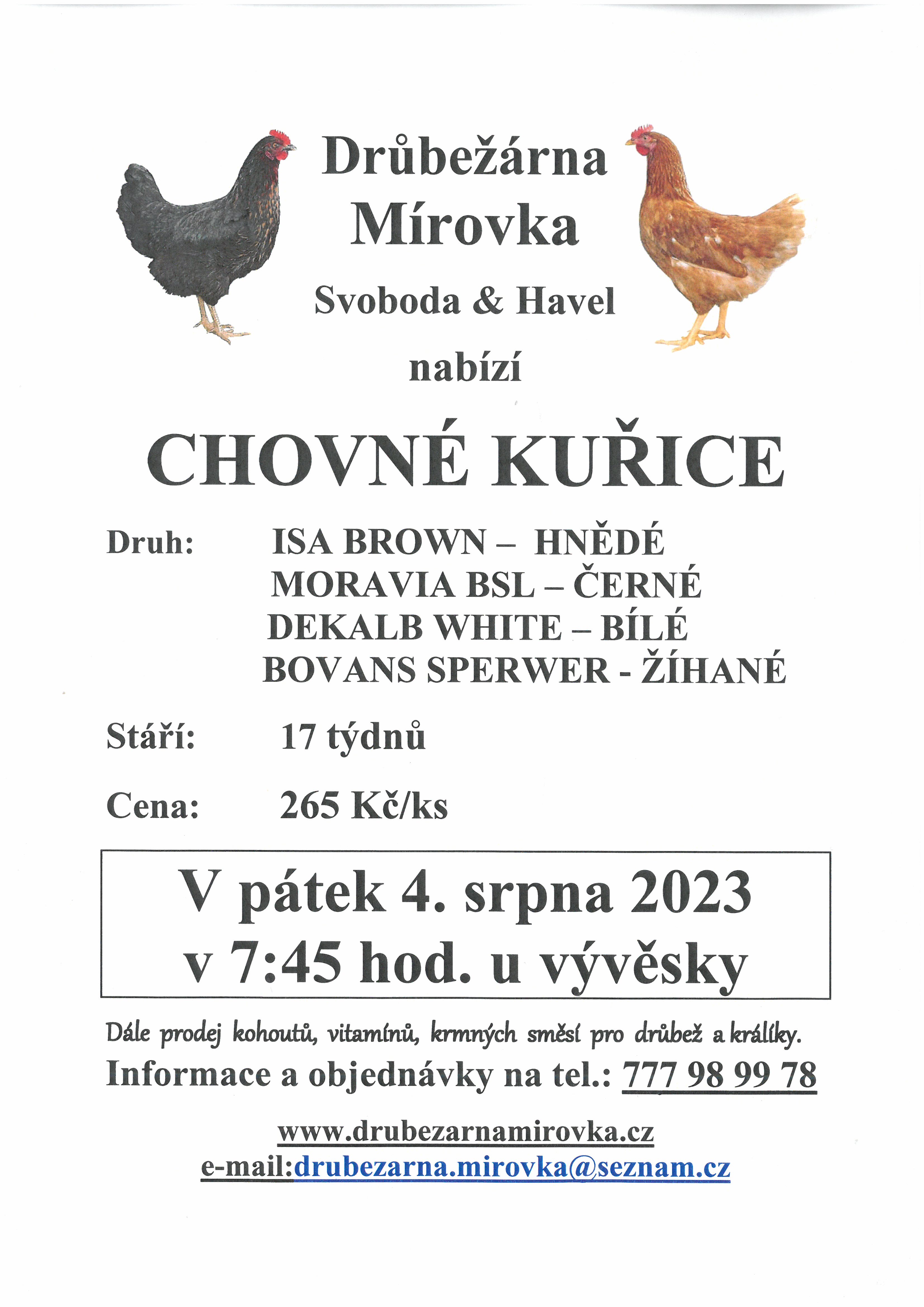 PRODEJ CHOVNÝCH KUŘIC 4.8.2023