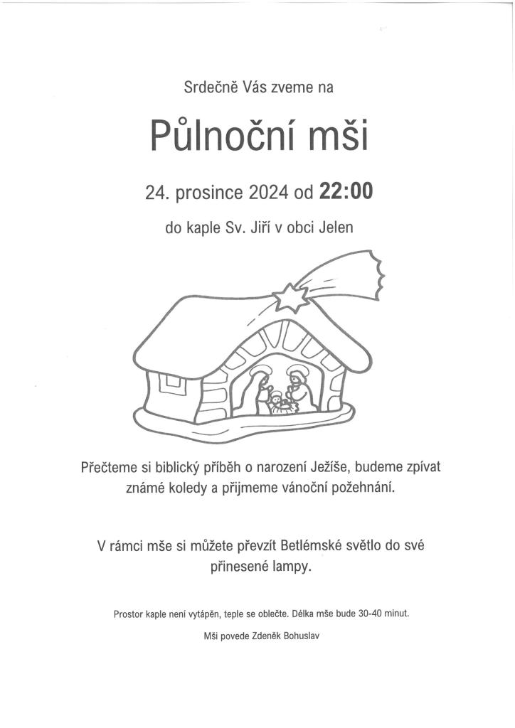 Půlnoční mše 24.12.2024 od 22:00 kaple Sv.Jiří na Jeleně