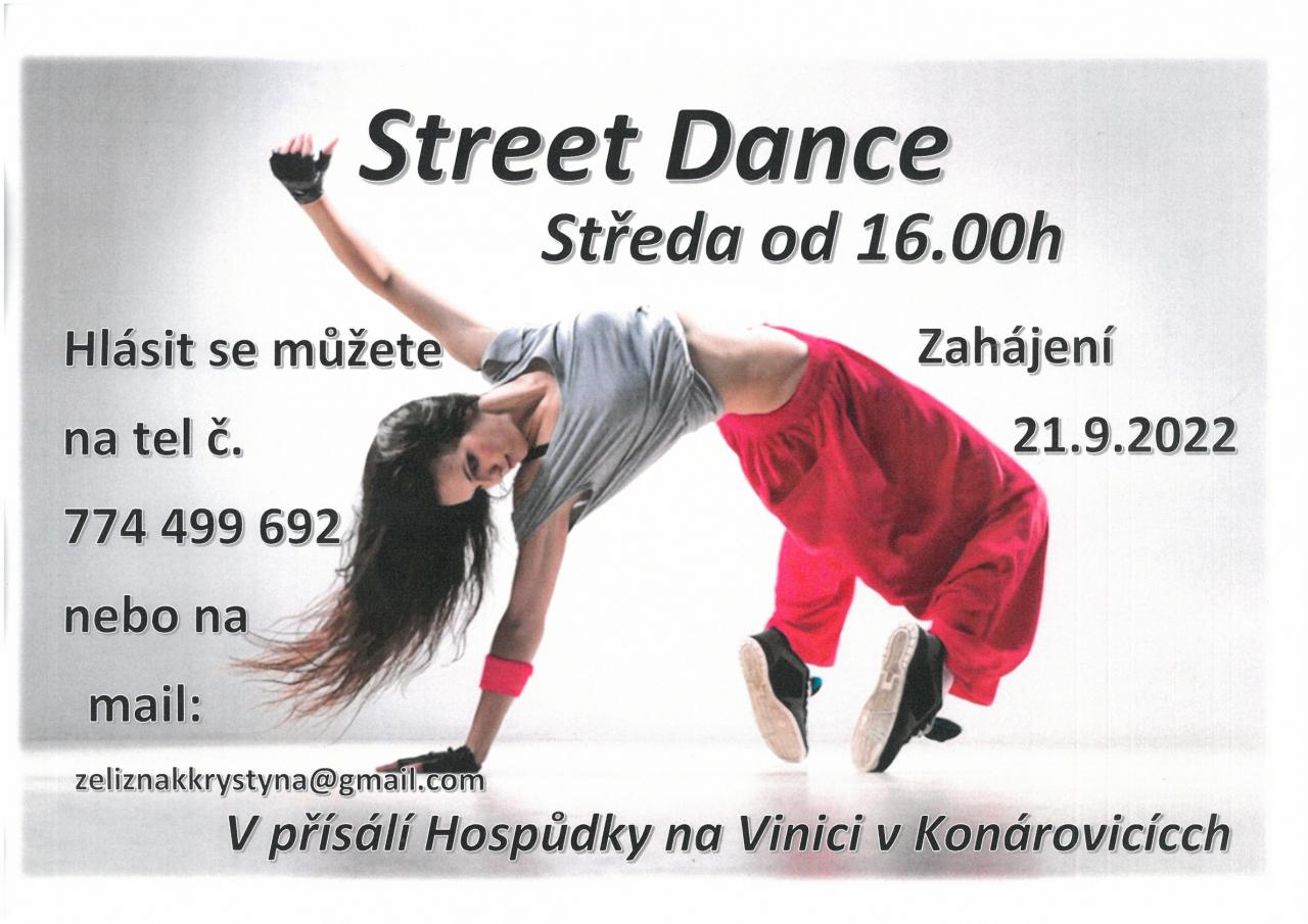 Street Dance - zahájení od 21.9.2022 od 16:00 hod.v přísálí Hospůdky na Vinici.