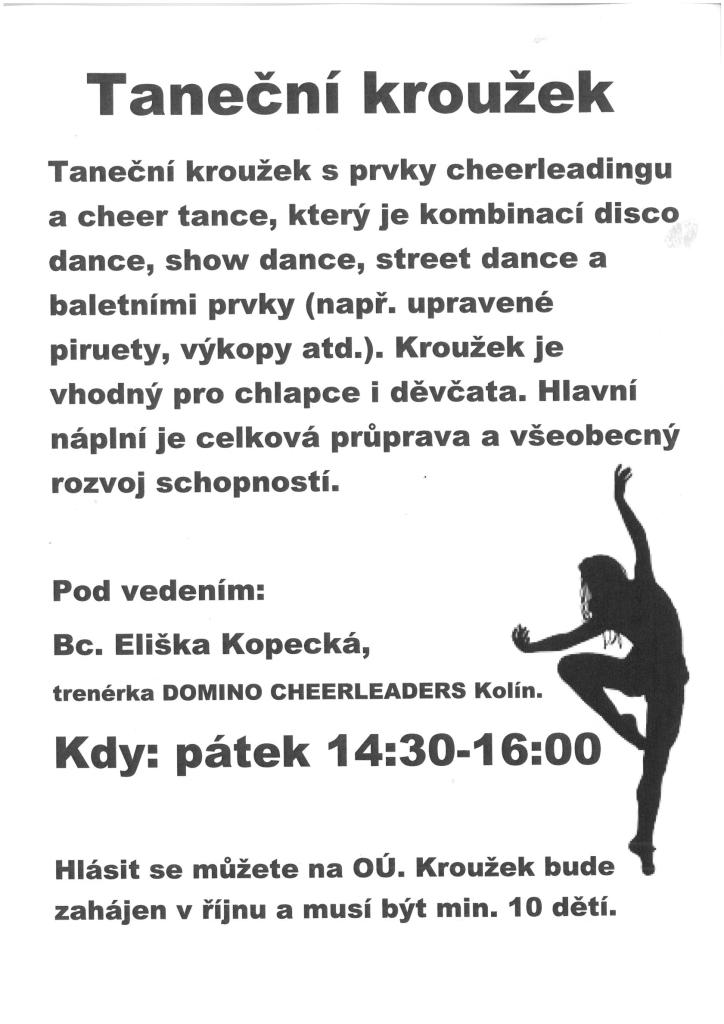 Nabídka tanečního kroužku v Konárovicích, každý pátek 14:30 - 16:00. Začíná se od října a musí být min.10 dětí. Přihlásit se můžete na obecním úřadě.