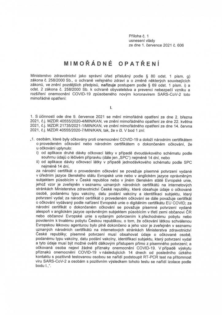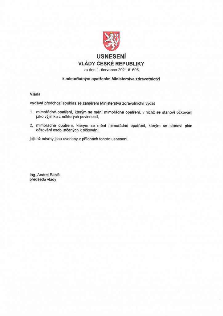 Usnesení Vlády ČR č.606 + Mimořádná opatření