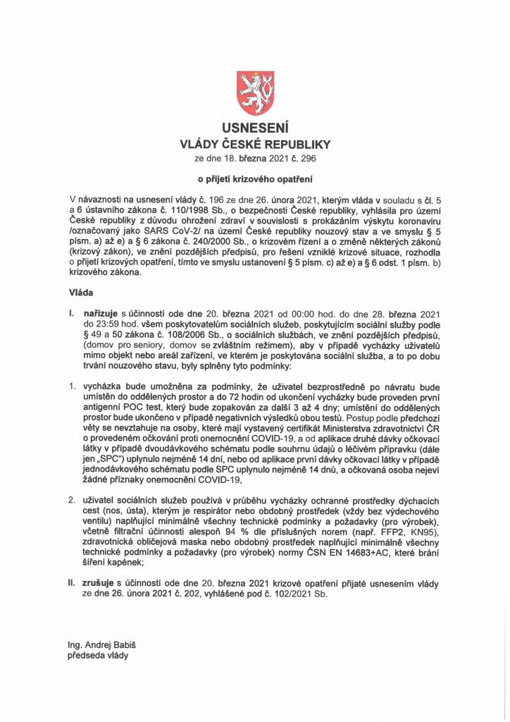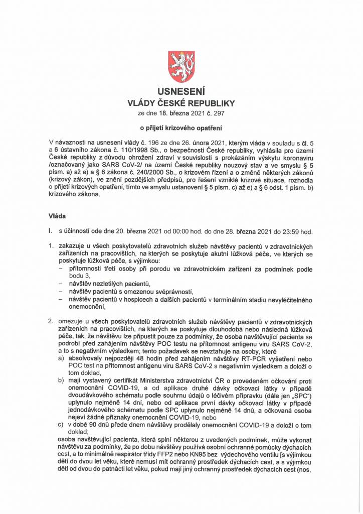 Usnesení Vlády ČR ze dne 18.3.2021