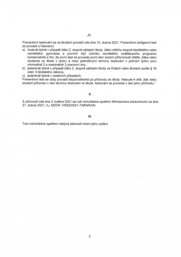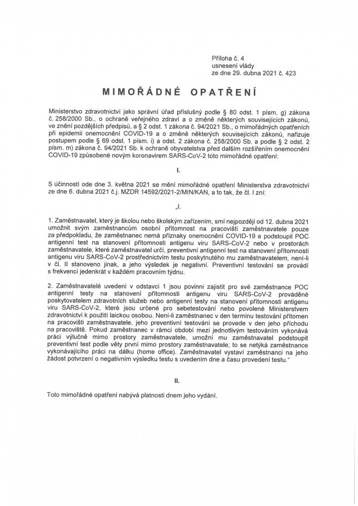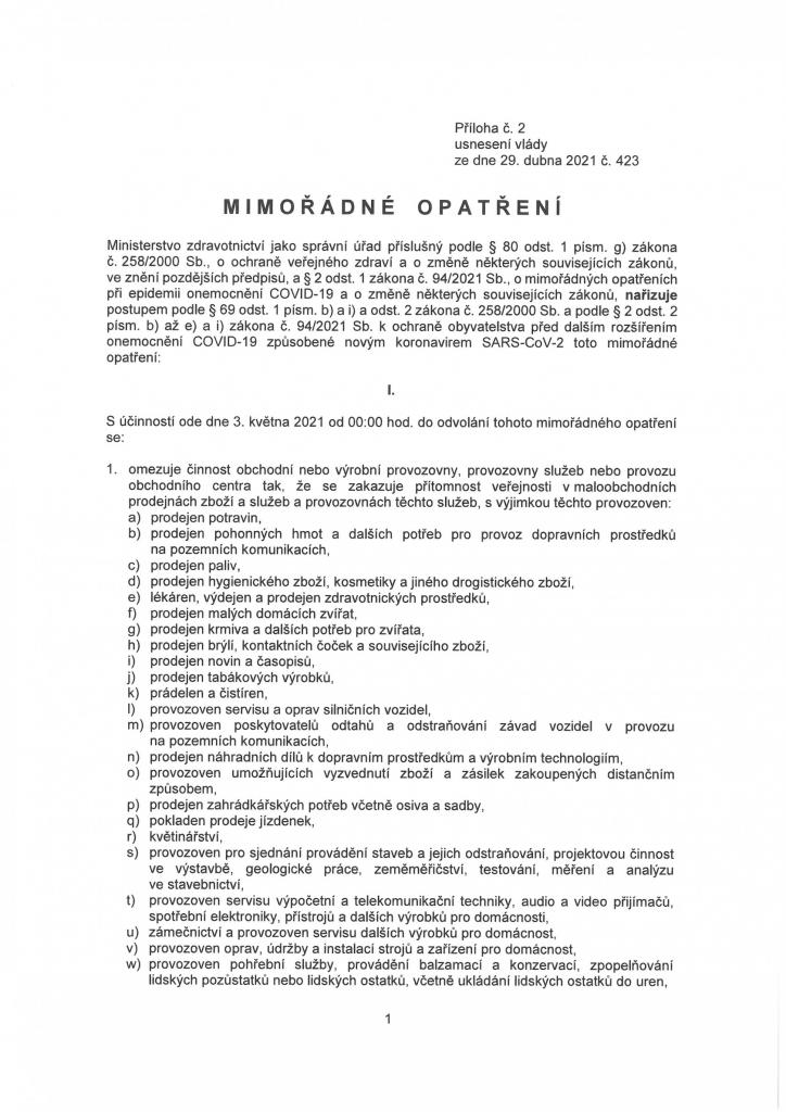Změny platné od 3.května 2021 školství,služby,kultura,obchody a další opatření.